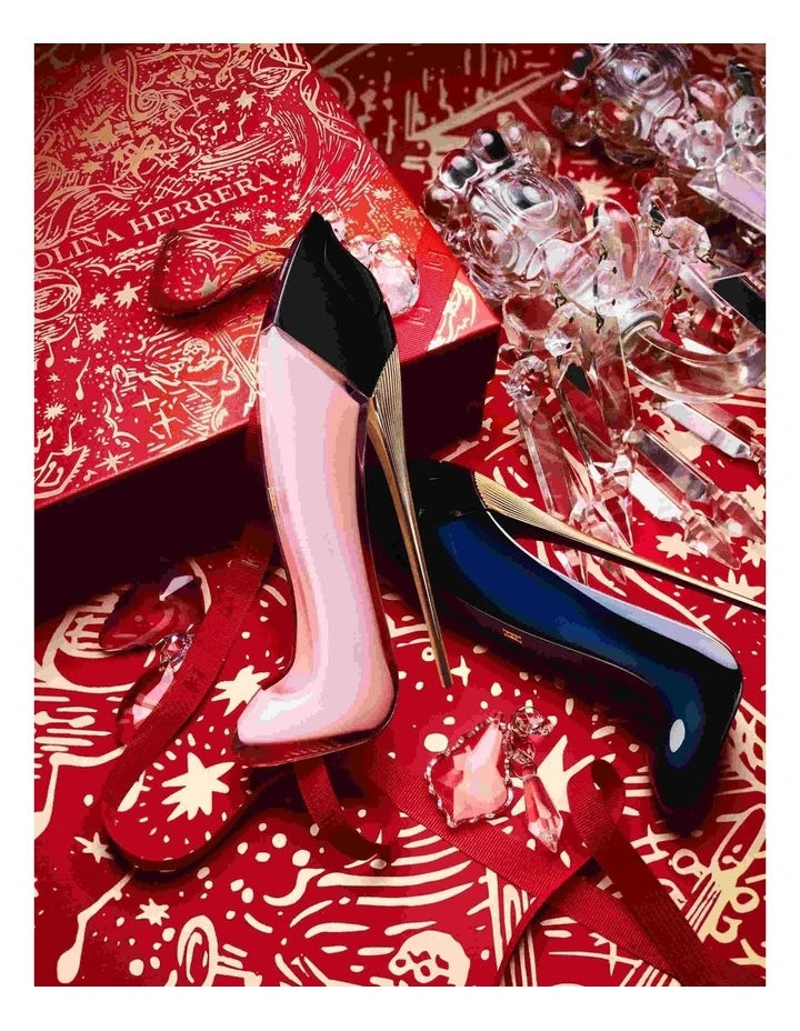 Good Girl Blush Eau de Parfum takes inspiration from the theme of a powdery blush, contrasting two different extractions of a sensual vanilla base with the romanticism of a Peony heart formed by two distinct forms of exotic Ylang Ylang and upcycled rosewater.